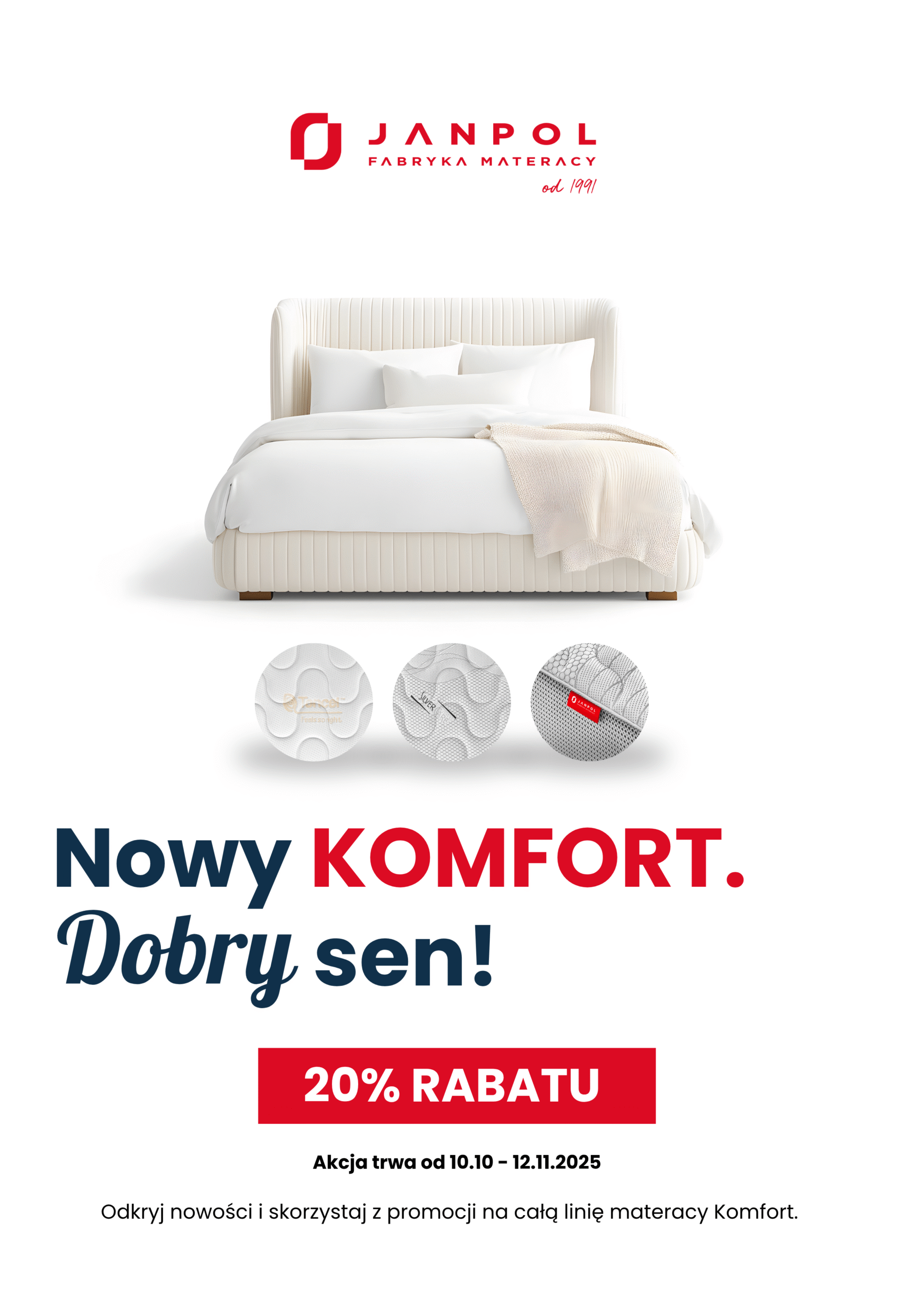 20% rabatu na wszystkie materace z linii KOMFORT.